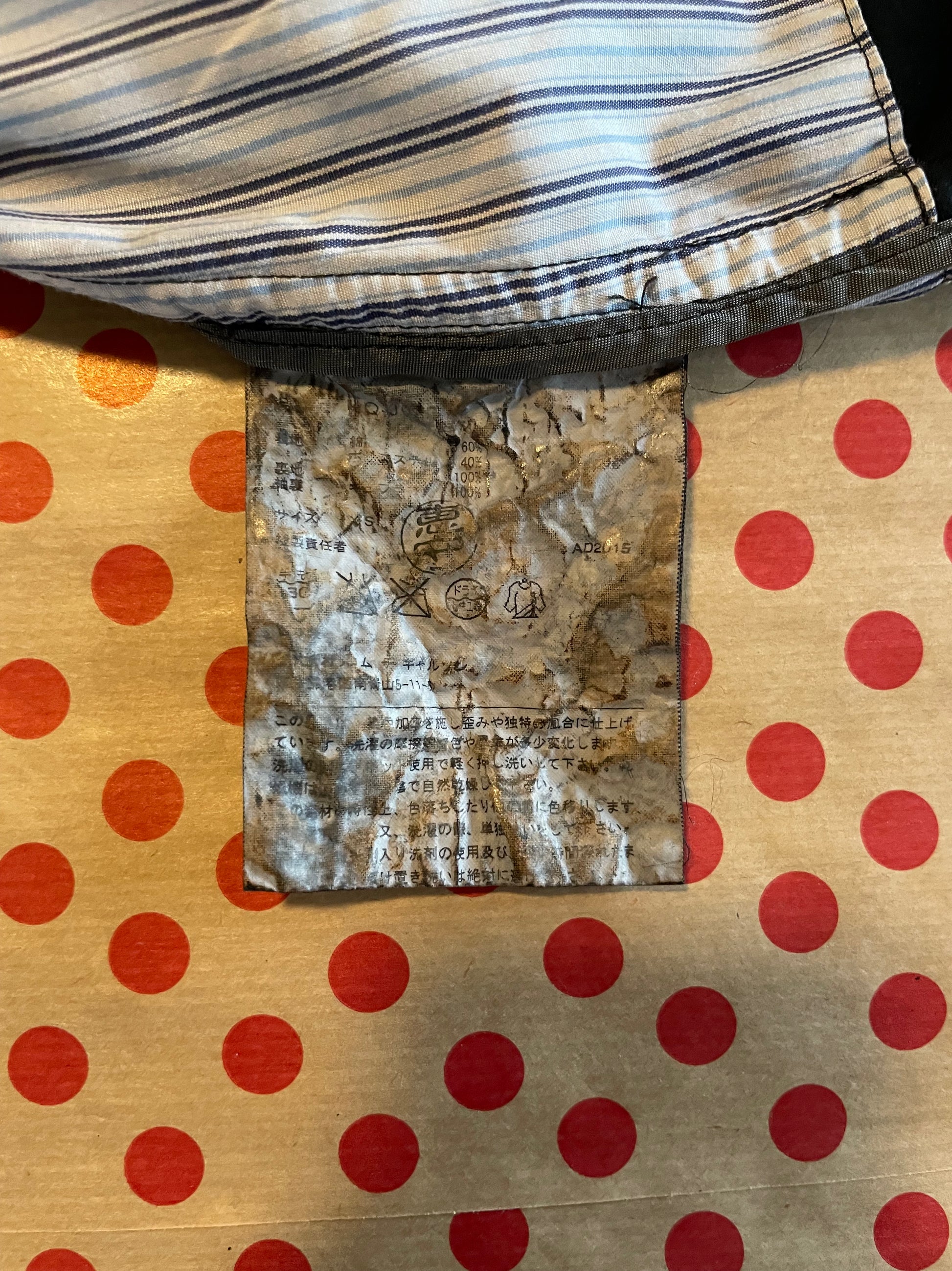 Comme des Garçons Homme AD2015, casual black blazer with a striped pattern on the inside.