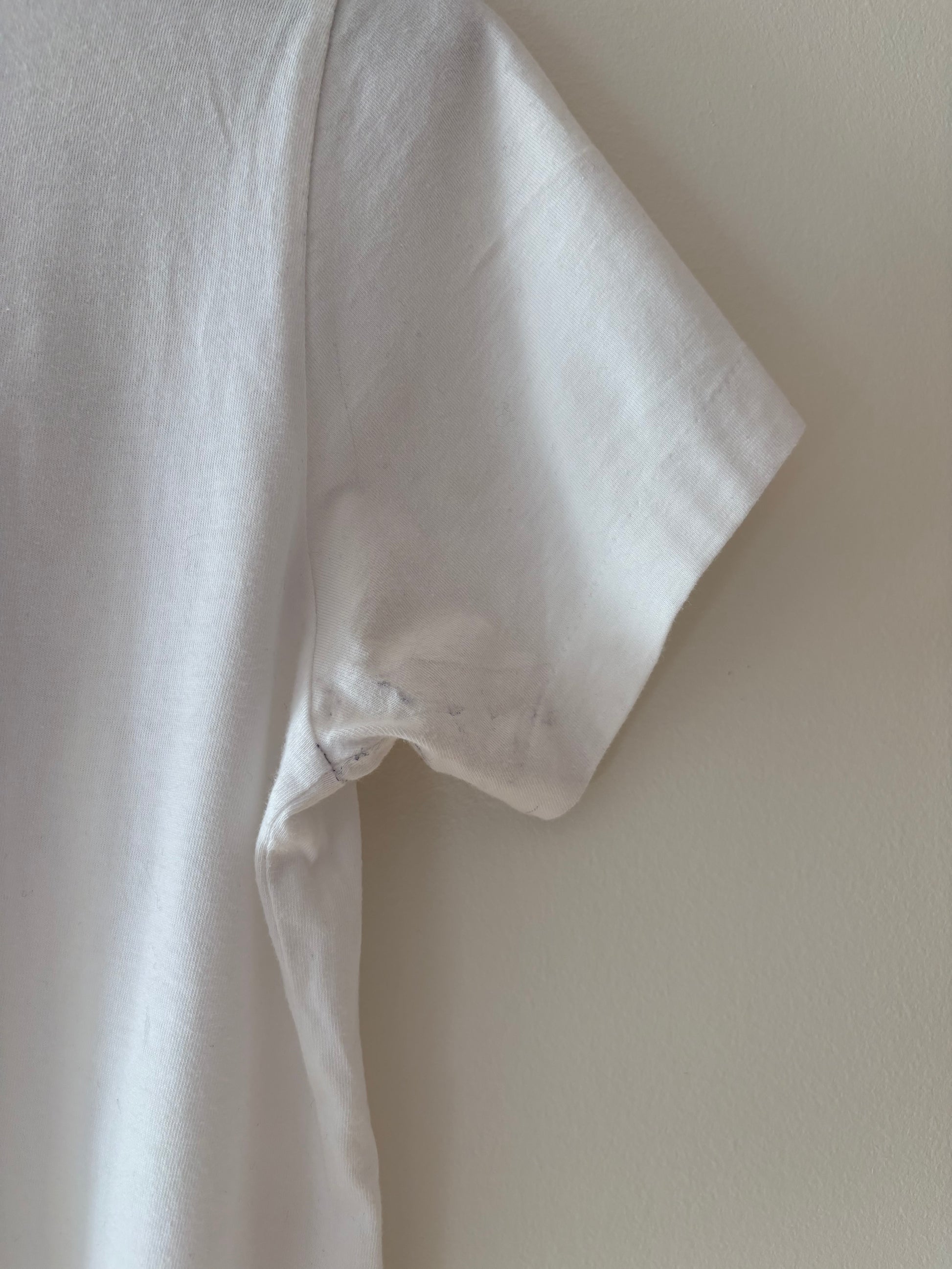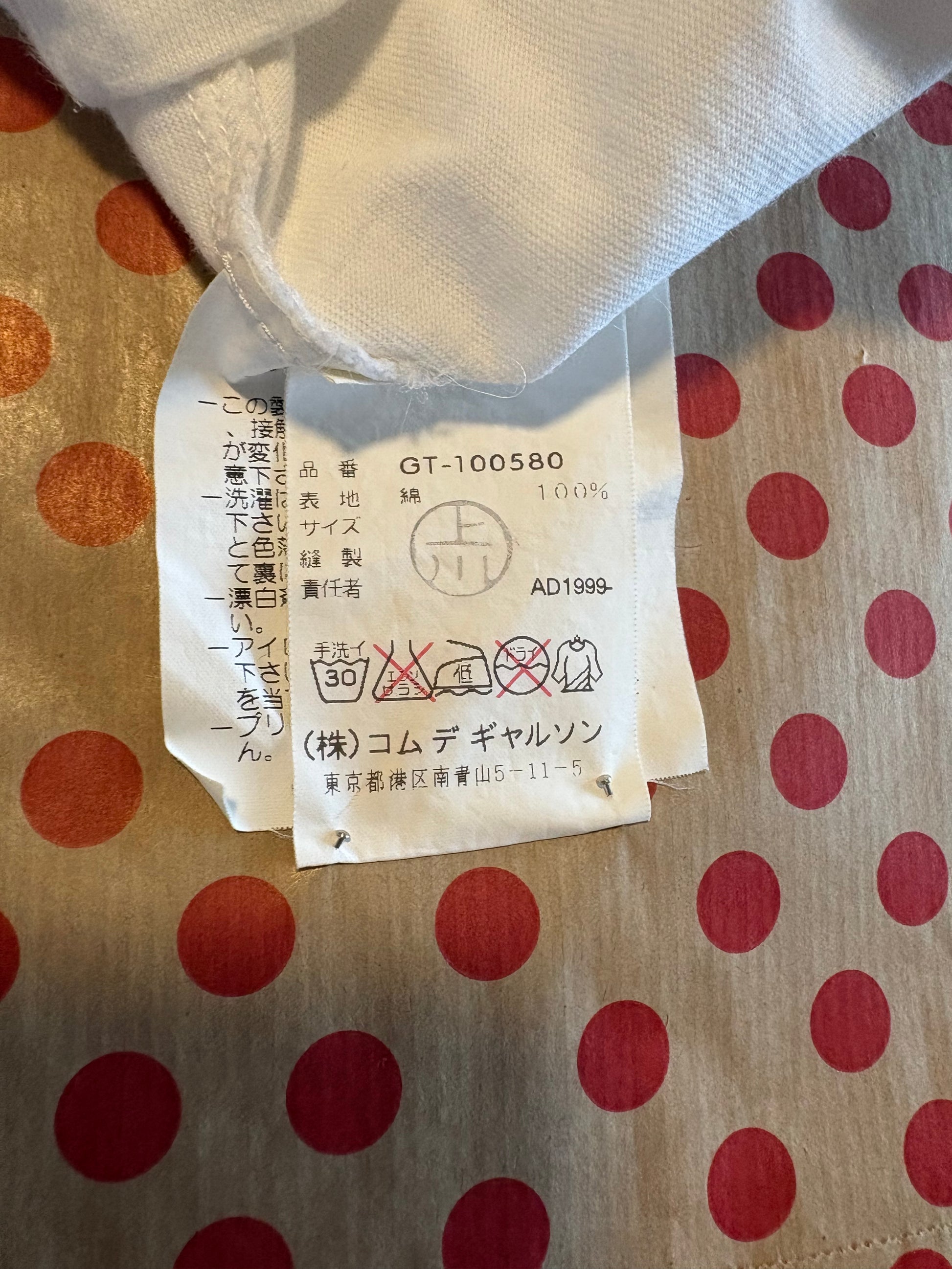 This tee is from CdG's main line which was the label Rei Kawakubo used when founding Comme des Garçons in 1969. Due to its limited production quantities and exclusive retail strategy, it's considered one of the rarest Cdg collections.