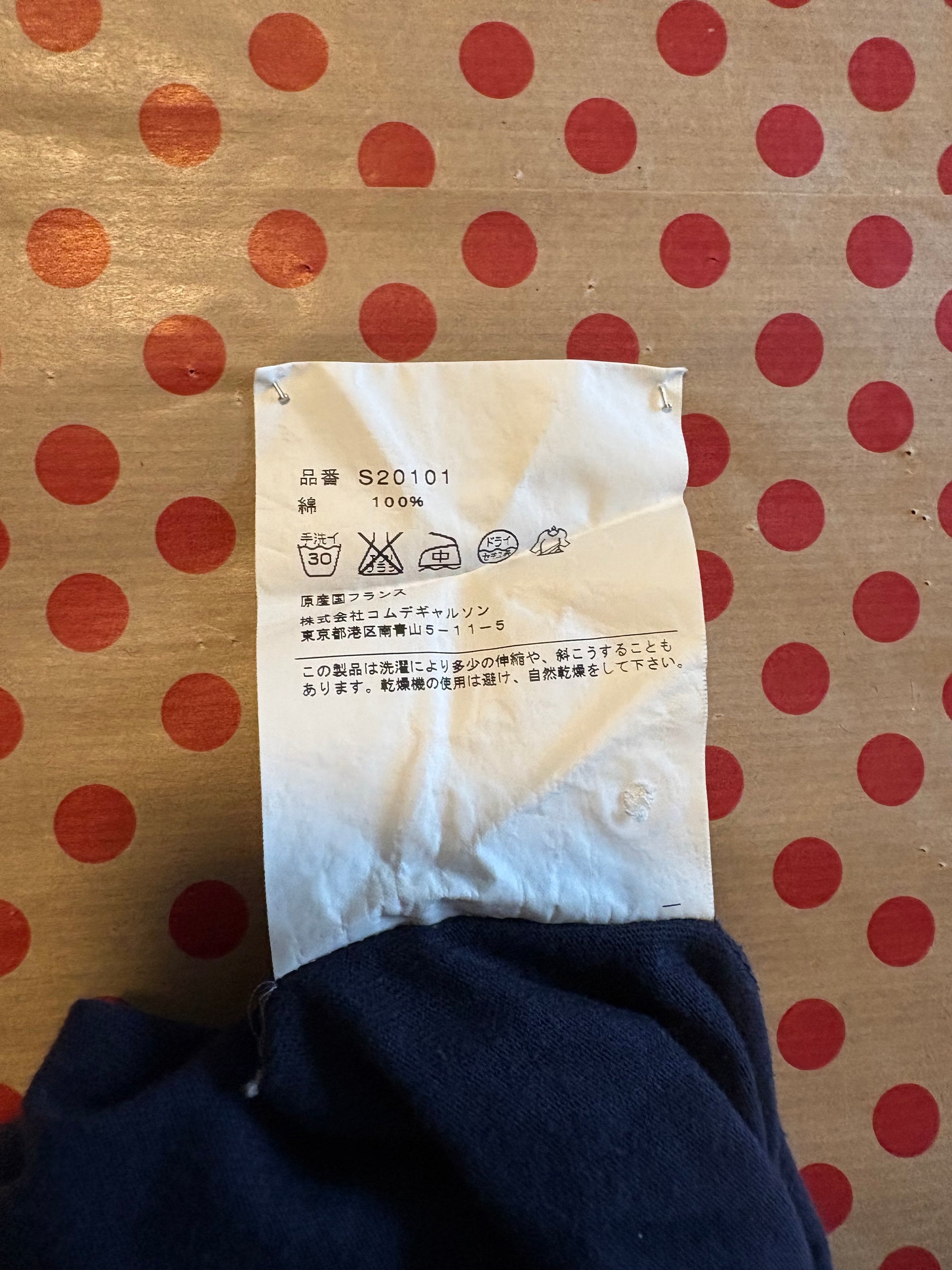 Comme des Garçons "SHIRT" SS2014 dark blue long sleeve with shirt material on the sleeves.