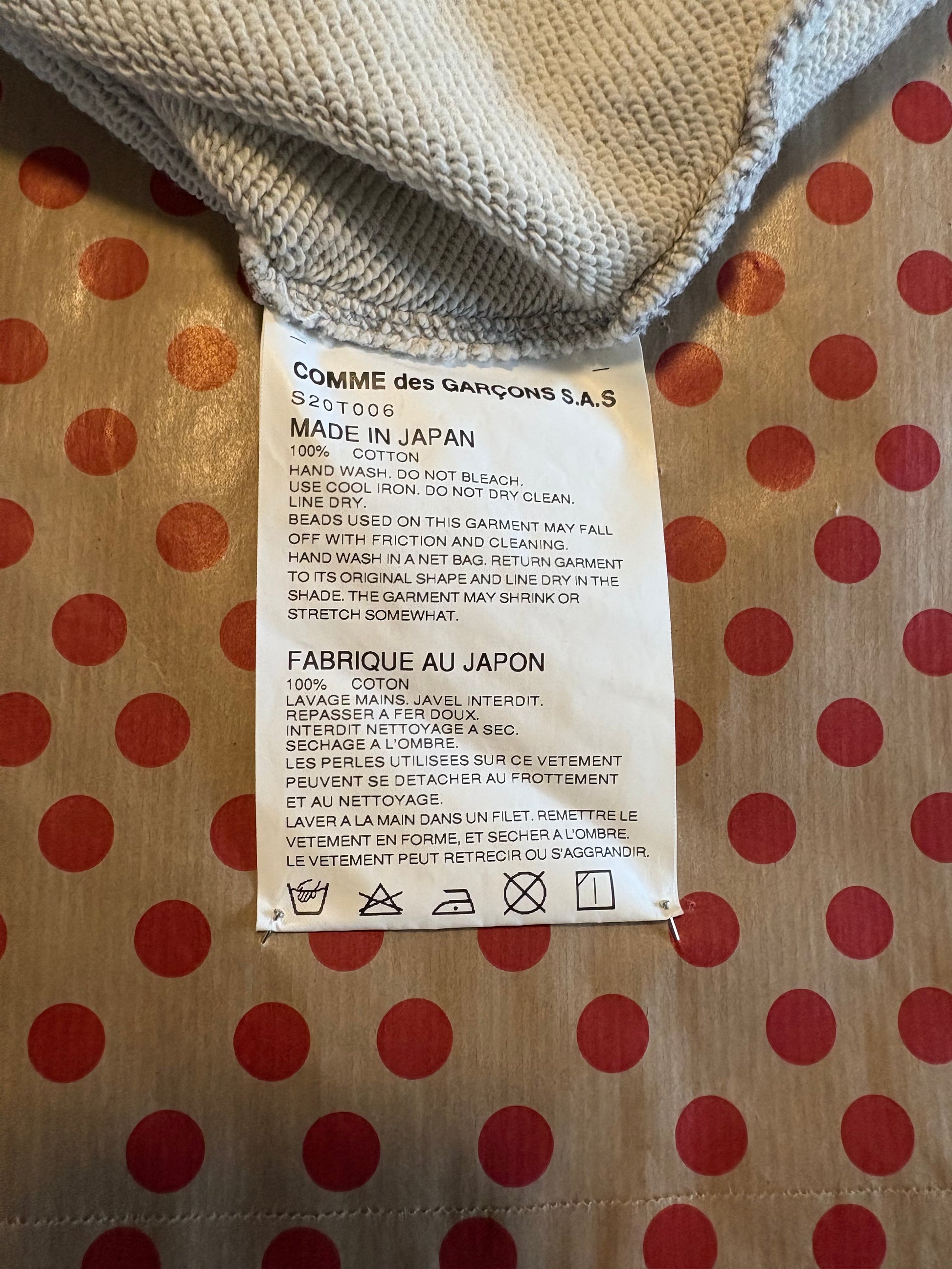 Comme des Garçons x Jupe by Jackie, SS2012 pearl sweatshirt featuring an unfinished hem for that effortless look.