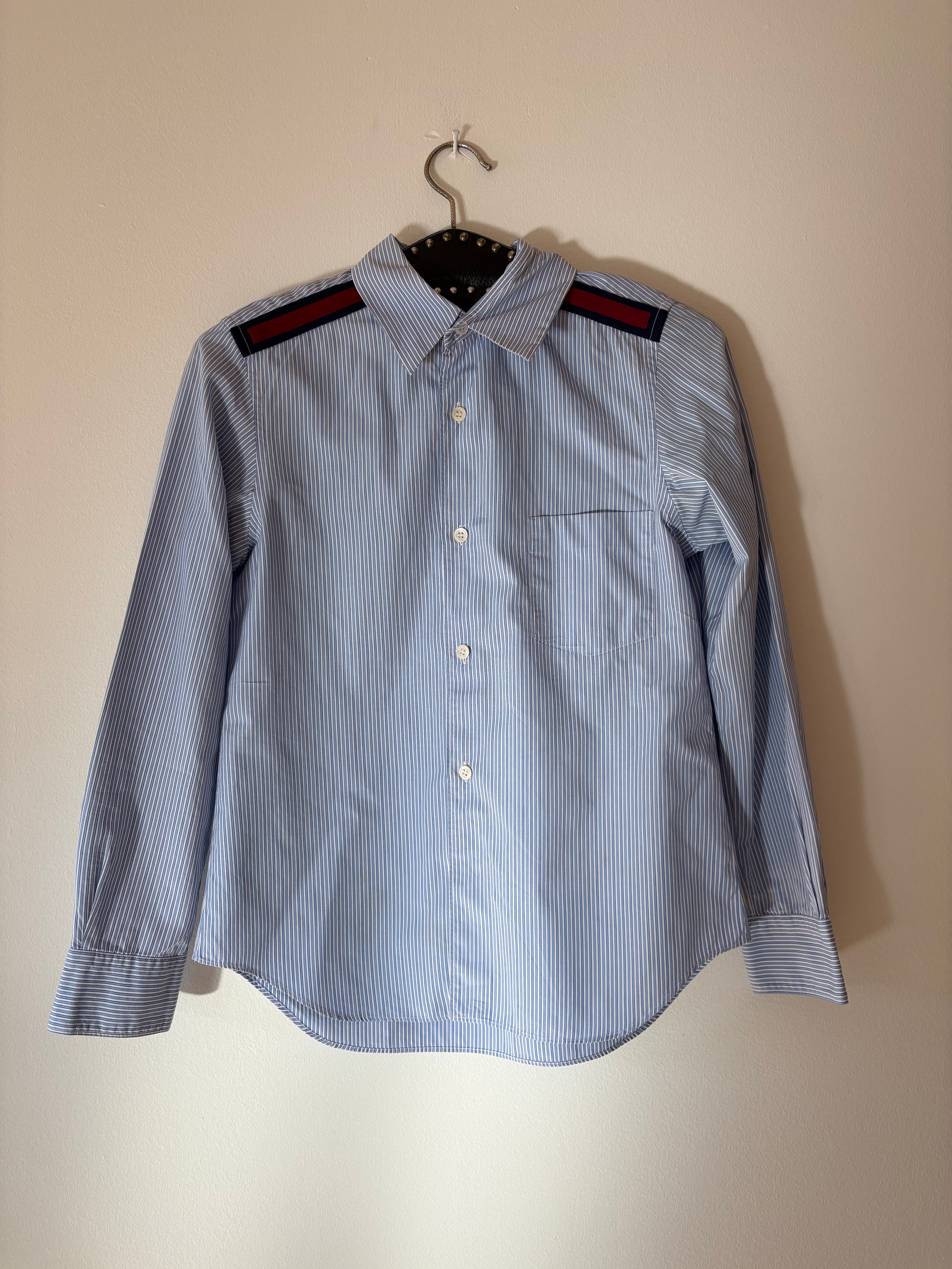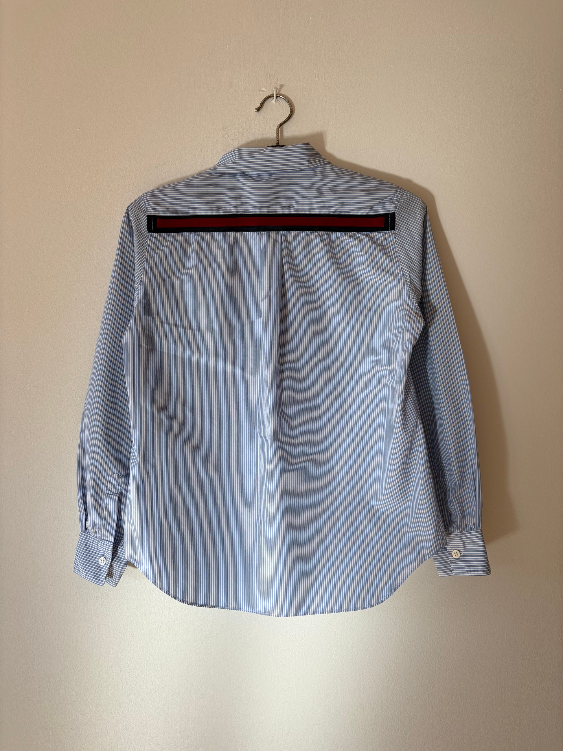 Comme des Garçons FW2008 blue striped shirt with red ribbons.